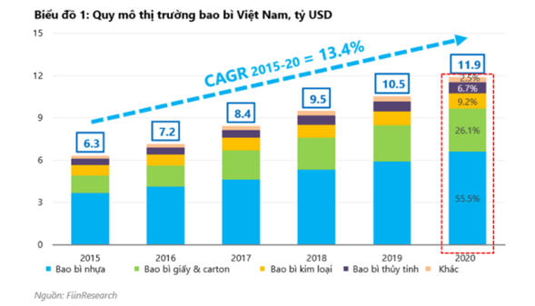 Hình 1: Biểu đồ quy mô thị trường bao bì Việt Nam