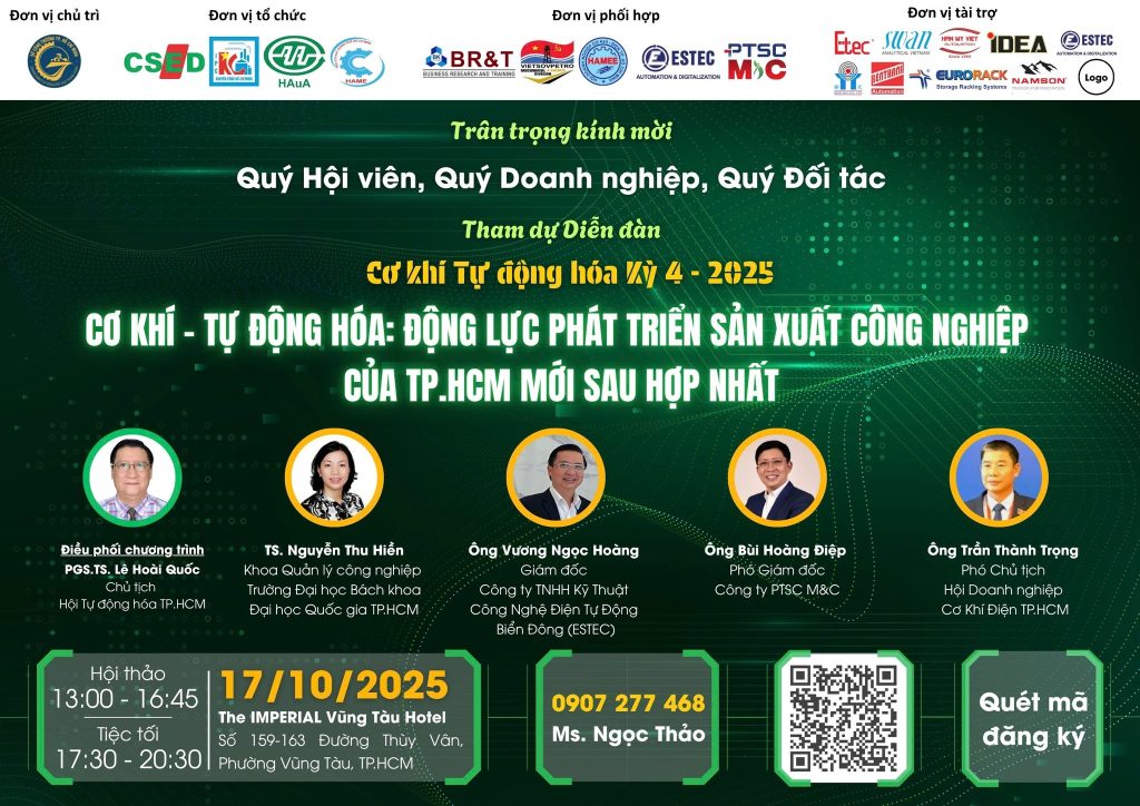 Ngày 17/10/2025, tại The IMPERIAL Vũng Tàu Hotel, Diễn đàn Cơ khí – Tự động hóa khóa IV năm 2025 đã diễn ra với chủ đề: