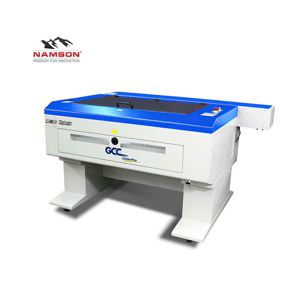 The GCC Gantry Laser machine – LaserPro MG380 Hybrid is equipped with metal laser tube and glass laser tube at the same time which allow user to produce superior engraving and cutting work piece. All in one machine save your storage space and make your profit maximum.