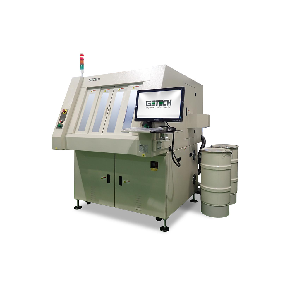 The GSR1280E is a stand-alone single tabletop router specifically designed to router (piece apart) large boards with PCB dimensions of 610mm x 610mm into individual units. Superior servo shaft system provides high speed acceleration/shift, reducing cycle times (increasing output)