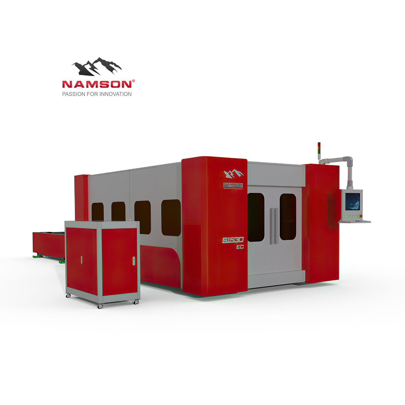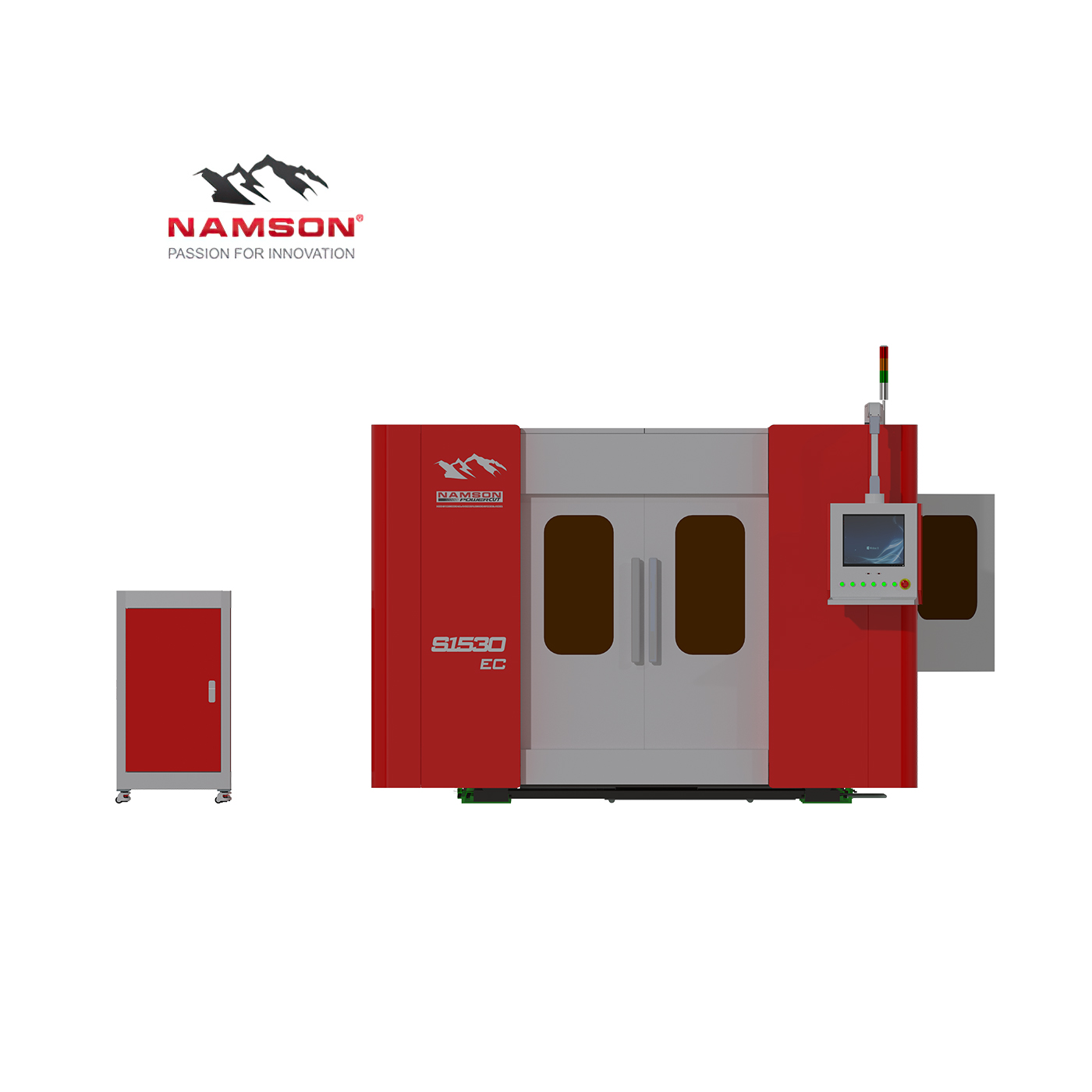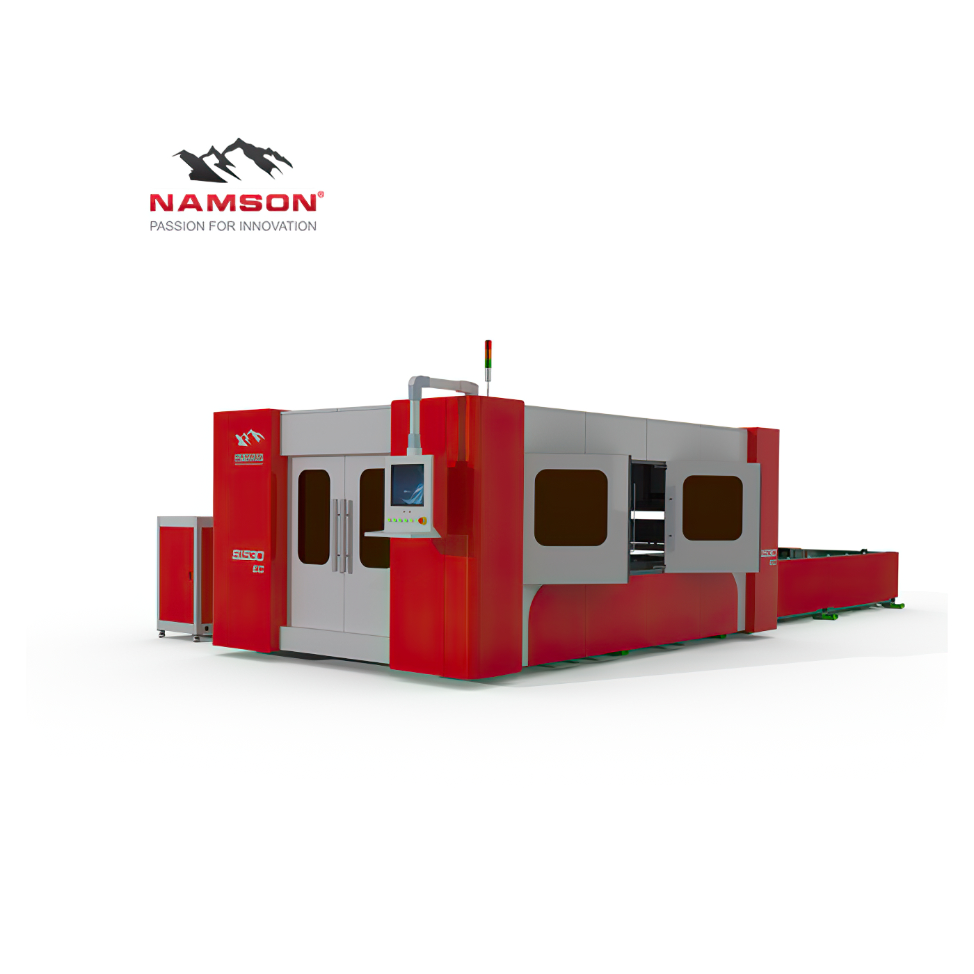 NAMSON POWERCUT S1350-DC laser fiber cutting machine with high power fiber laser and large working bed, exchange table, enclose cover, providing optimum solutions for sheet metal cutting applications in many industries. NAMSON POWERCUT S1350-DC with multiple options of working size, laser power levels will meet most of the need of sheet metal cutting regarding product volume, thickness, and multiple materials.
