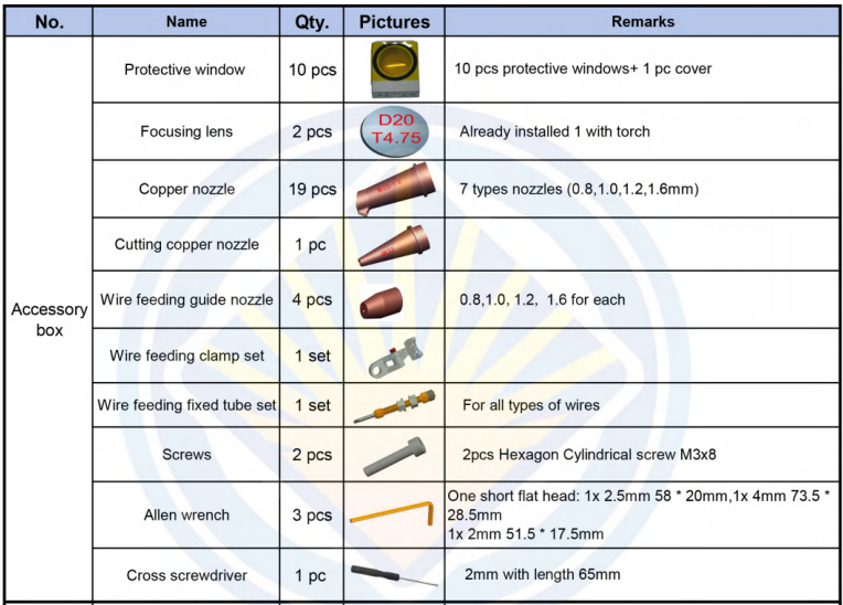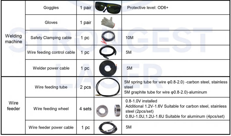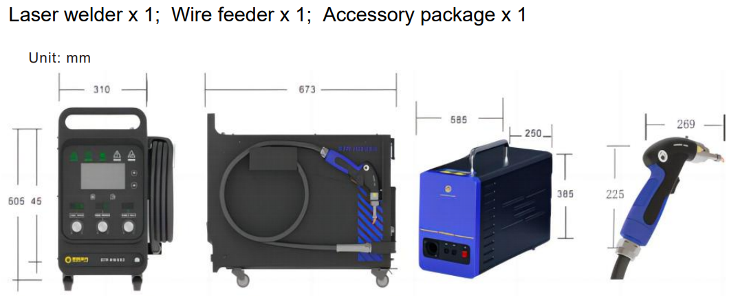 Laser welder x 1; Wire feeder x 1; Accessory package x 1