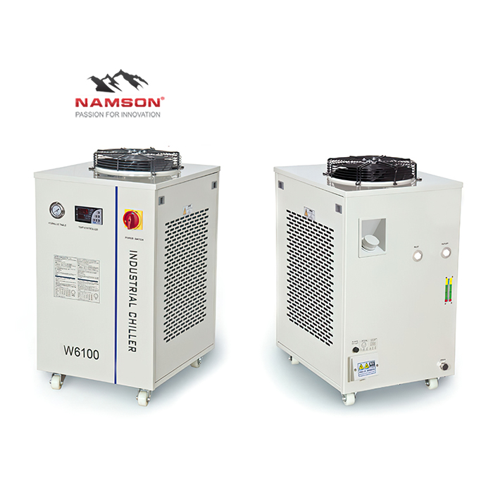 W6100 is known as a small industrial water chiller with a capacity of 4200W, which is used to cool down the heat generated by the laser during operation due to its precise compression with intelligent temperature control mechanisms and complete configuration.